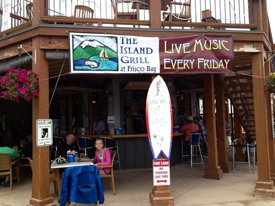 CLOSED NOW FOR THE SEASON! WILL OPEN AGAIN AROUND MEMORIAL DAY 2026. Stop by to enjoy the county's best lake and mountain views while enjoying our newly expanded menu. We feature a wide variety of fresh, healthy appetizers & entrees. Including our famous Fish Tacos! Visit our open-air bar and enjoy an Island Sunset, our habit-forming signature cocktail. Open daily, 11:30am to 7pm, weather permitting. Happy Hour nightly starting at 4pm. Located at Frisco Bay Marina, a stone's throw from the water's edge.