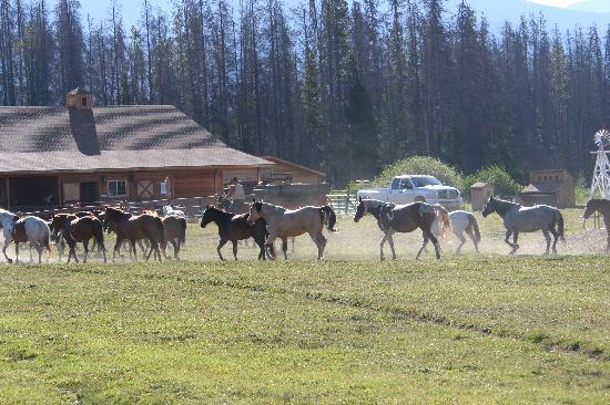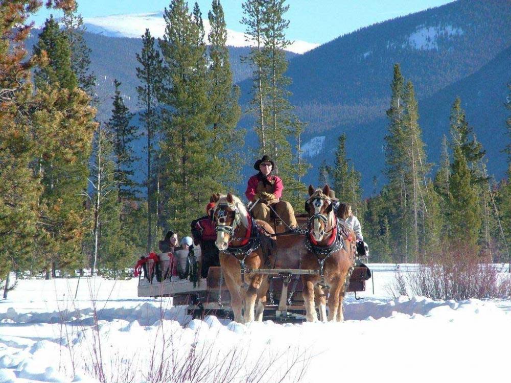 In Summer we offer 1 & 2 hour guided trail rides. Two-hour ride goes into the Rocky Mountain National Park. Musical hayrides with a stop at the Sarsaparilla Saloon. Campground on 160 acres bordering the National Park & Forest. Spacious RV/tent sites, camp with your horses. Lodge Rooms, Cabins, Chuck Wagon Breakfasts. Fishing, Hiking, Frisbee Golf Course, Animal Farm & ATV Rentals in summer. In Winter we have snowmobiles through On The Trail Rentals, their ad is on this site. Sleigh Rides run mid-December until the 31st. Take Hwy 34 north of Grand Lake to Kawunechee Visitor center turn left on CR 491, go 1-1/2 miles. Call for information, visit our website or contact us through contact business form.